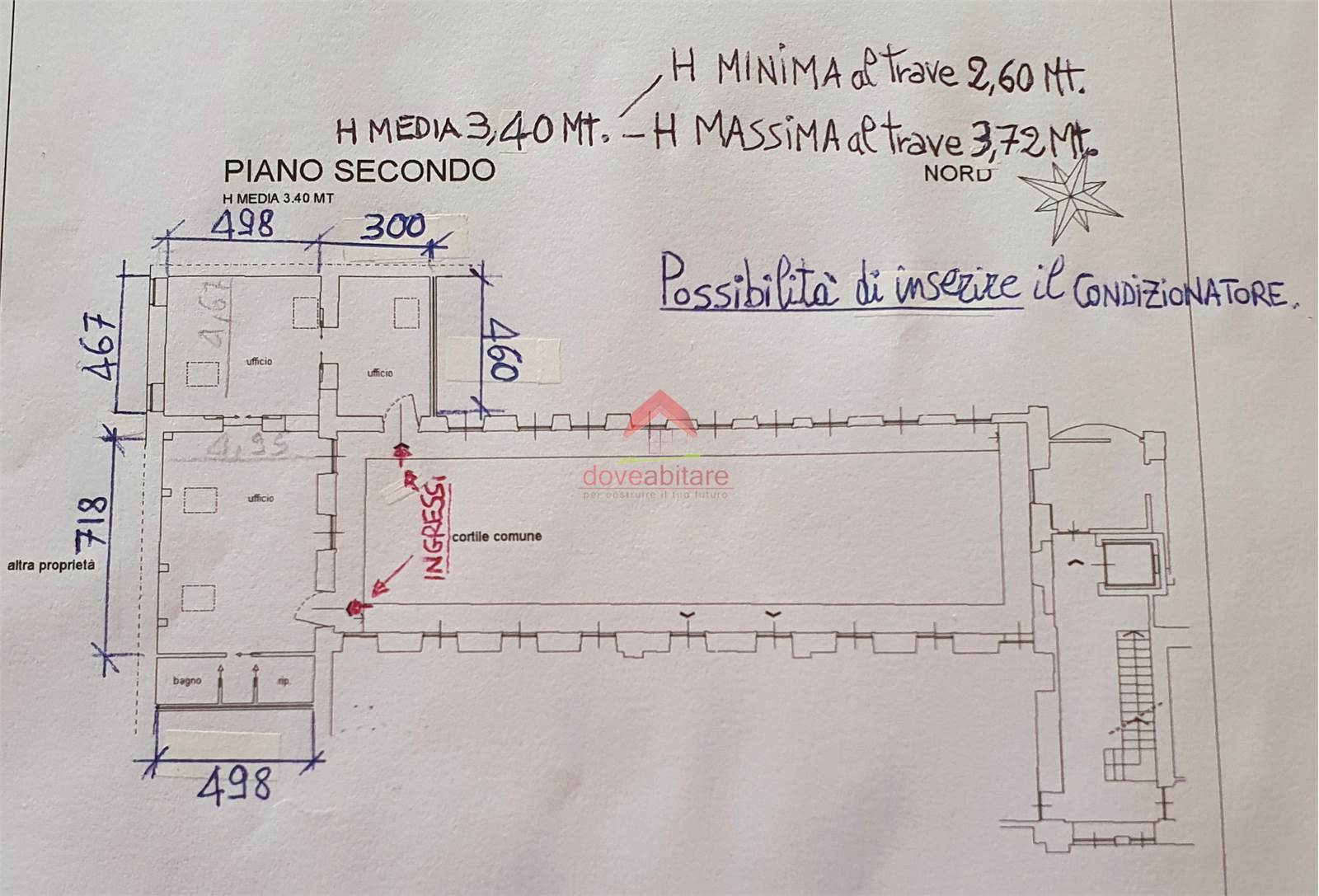 Sono presenti 3 vani comodi, oltre ad archivio/ripostiglio, antibagno e bagno.